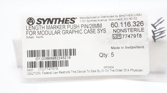 - Synthes 60.116.326 Length Marker Push Pin/26mm Nonsterile - Pack of 3