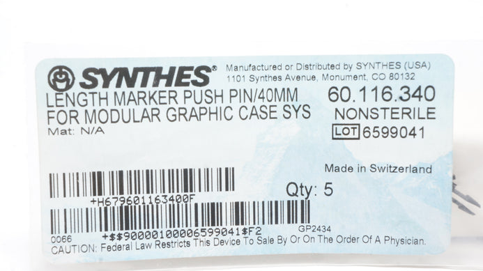 - Synthes 60.116.340 Length Marker Push Pin/40mm - Pack of 2