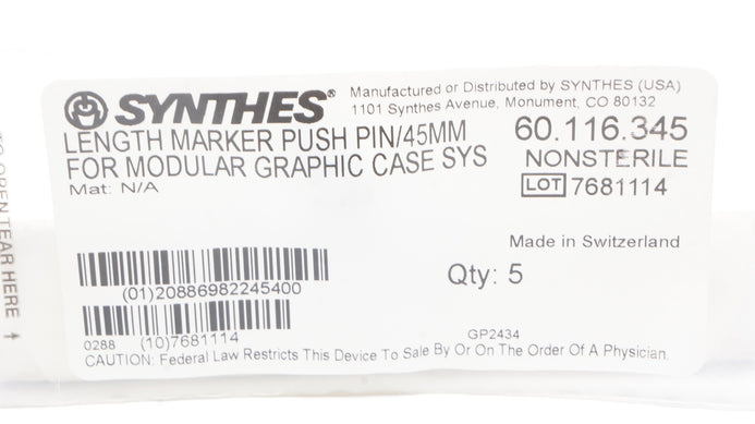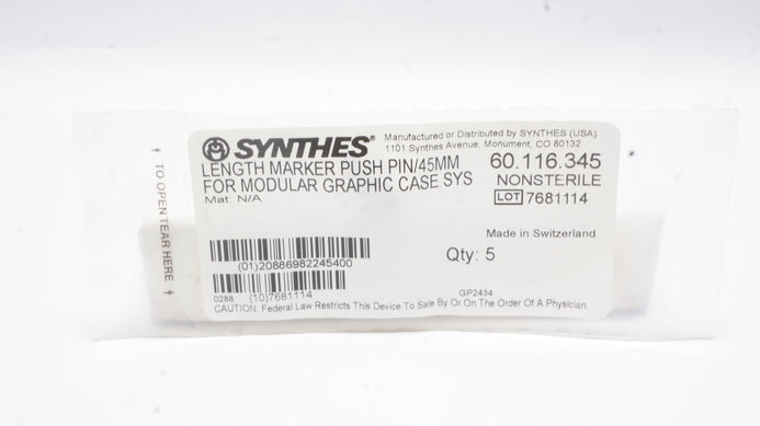 - Synthes 60.116.345 Length Marker Push Pin/45mm Nonsterile - Pack of 4