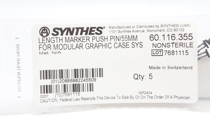- Synthes 60.116.355 Length Marker Push Pin/55mm Nonsterile - Pack of 3