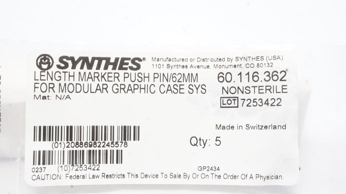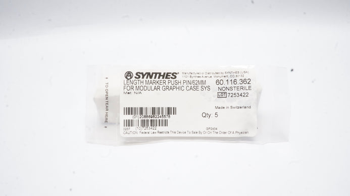 - Synthes 60.116.362 Length Marker Push Pin/62mm - Pack of 4