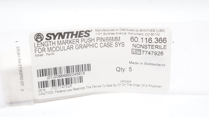 - Synthes 60.116.366 Length Marker Push Pin/66mm Nonsterile - Pack of 4