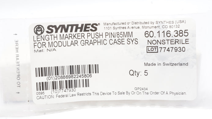 - Synthes 60.116.385 Length Marker Push Pin/85mm Nonsterile - Pack of 3