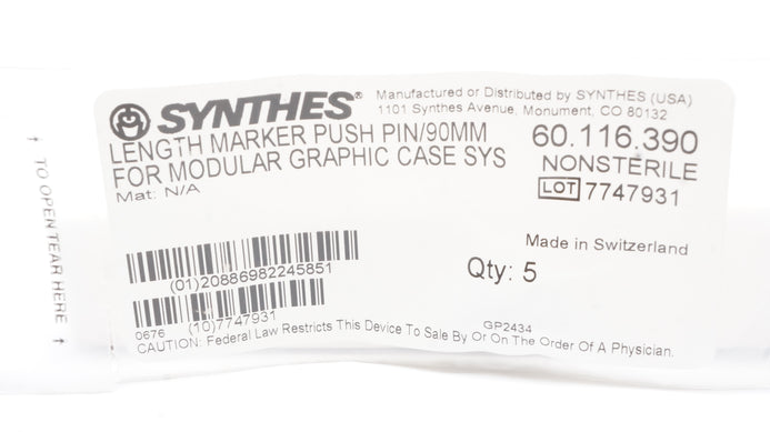 - Synthes 60.116.390 Length Marker Push Pin/90mm Nonsterile