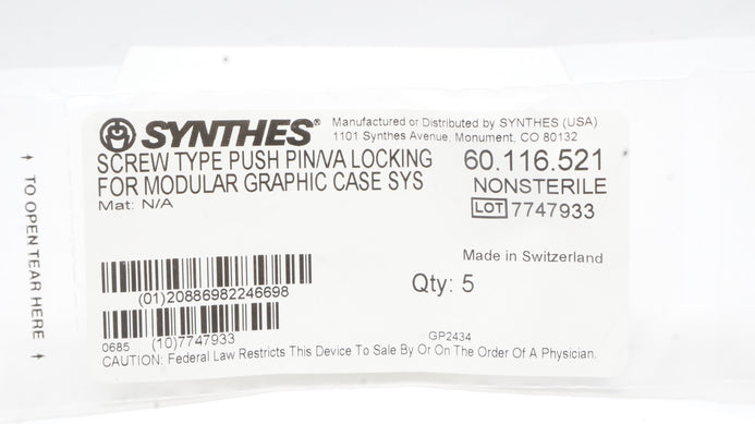 - Synthes 60.116.521 Screw Type PushPin/VA Locking