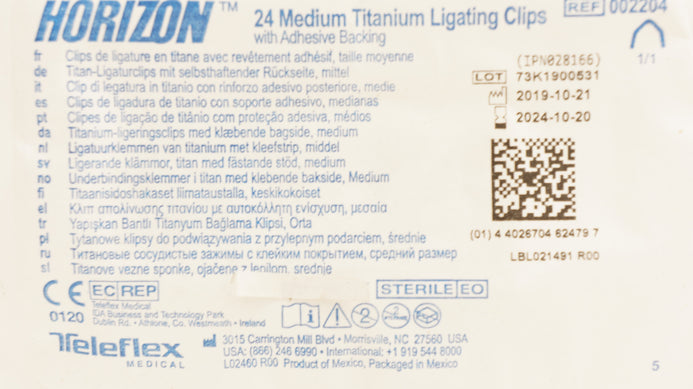 - Teleflex 002204 Medium Titanium Ligating Clips Adhesive Backing - Pack of 24