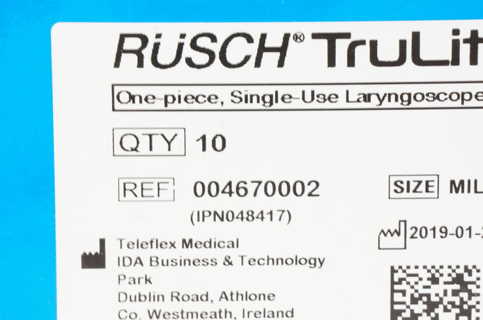 - Teleflex 004670002 Rusch TruLite Secure Laryngoscope Handle-Blade - Box of 10