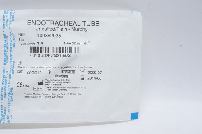 - Teleflex 100382035 Endotracheal Tube Uncuffed/Plain - Murphy 3.5mm x 4.7mm (x)