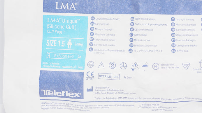 - Teleflex 105200-000015 LMA Laryngeal Mask Airway Size 1.5 5-10kg P≤60cm H2O