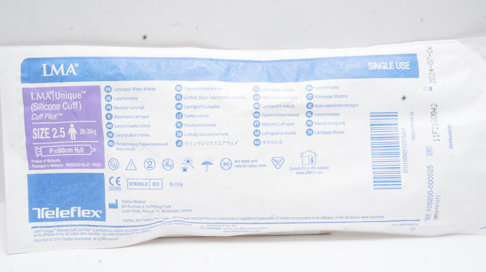 - Teleflex 105200-000025 LMA Laryngeal Mask Airway Size 2.5, 20-30kg, P≤60cm H2O