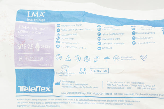 - Teleflex 105200-000025 LMA Unique Cuff Pilot Size 2.5, 20-30kg, P≤60cm H2O (x)