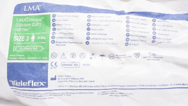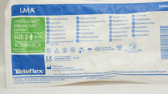 - Teleflex 105200-000030 LMA Unique Laryngeal Mask Airway Size 3 30-50kg ≤60cm H2O