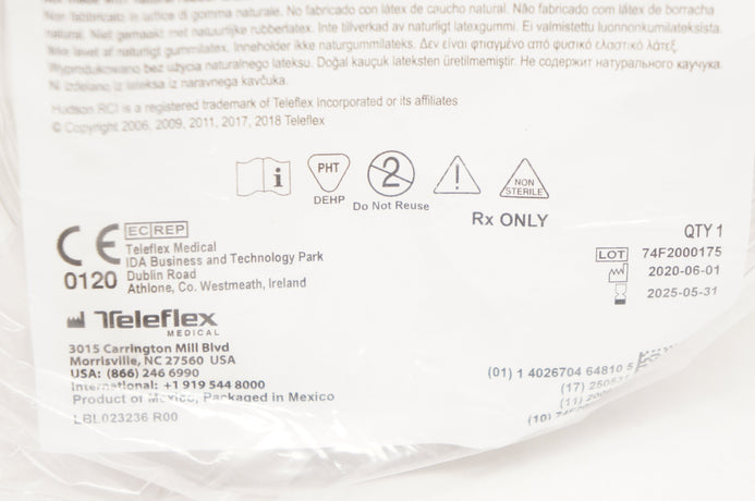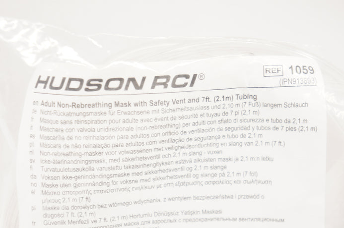 - Teleflex 1059 Hudson RCI Adult Non-Rebreathing Mask w/Safety Vent & 7ft. Tubing