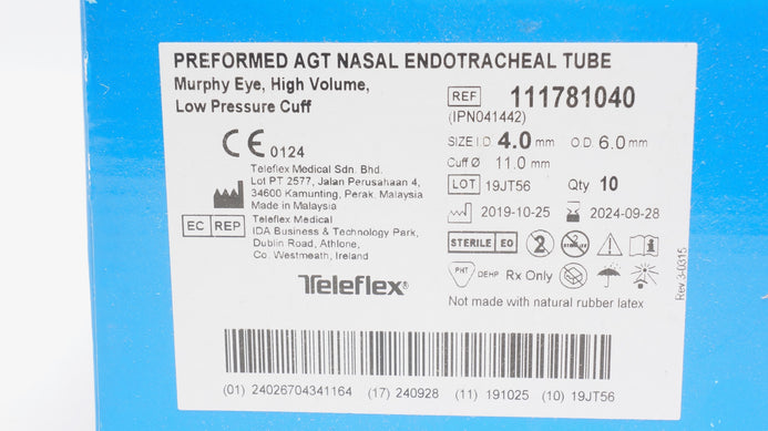 - Teleflex 111781040 Preformed Agt Nasal Endotracheal Tube 4 x 6x11mm-Box of 10(x)