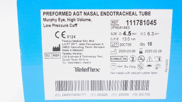 - Teleflex 111781045 Preformed Nasal Endotracheal Tube 4.5x6.3 x 13mm-Box of 10(x)