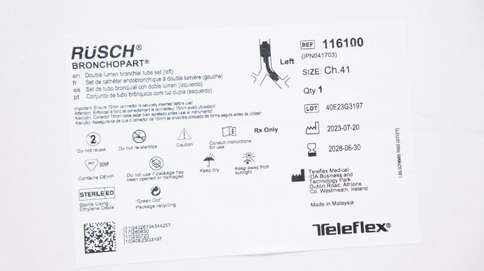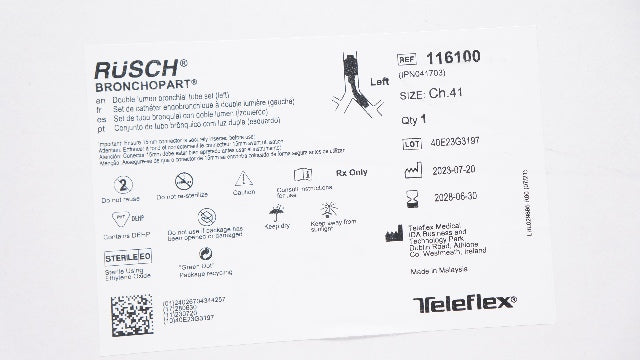 - Teleflex 116100 Rusch Bronchopart Double Lumen Bronchial Tube Set Left 41Ch
