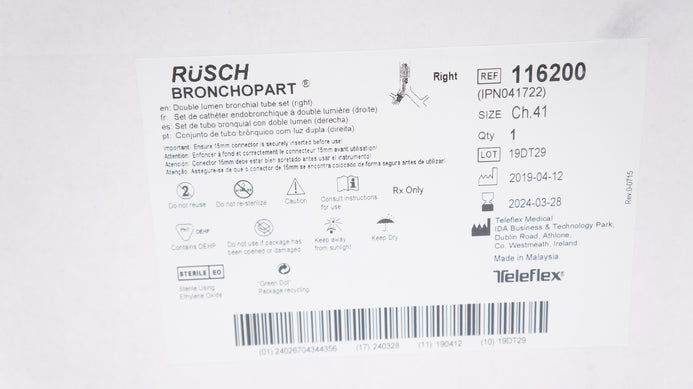 - Teleflex 116200 Rusch Bronchopart Double Lumen Bronchial Tube Set 41Ch (x)