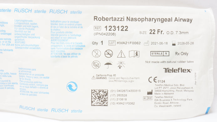 - Teleflex 123122 Rusch Robertazzi Nasopharyngeal Airway 22Fr x 7.3mm OD