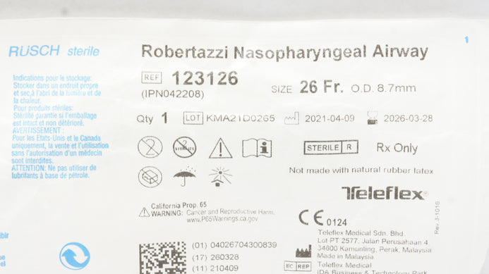 - Teleflex 123126 Rusch Robertazzi Nasopharyngeal Airway 26Fr x 8.7mm OD (x)