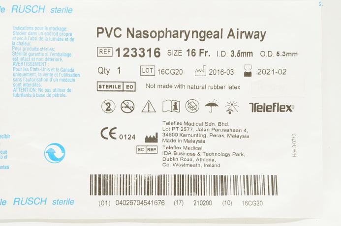 - Teleflex 123316 Rusch PVC Nasopharyngeal Airway 16Fr x 3.5mm ID x 5.3mm OD (x)