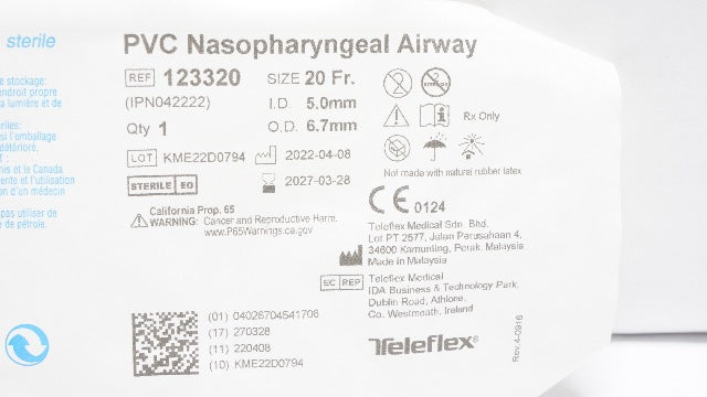 - Teleflex 123320 Rusch PVC Nasopharyngeal Airway 20Fr x 5.0mm ID x 6.7mm OD