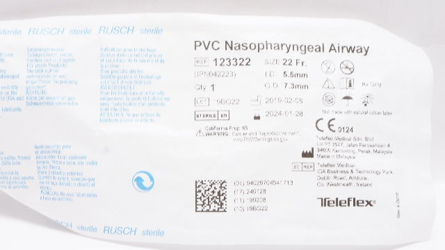 - Teleflex 123322 PVC Nasopharyngeal Airway 22Fr. x 5.5mm I.D. x 7.3mm O.D.(x)