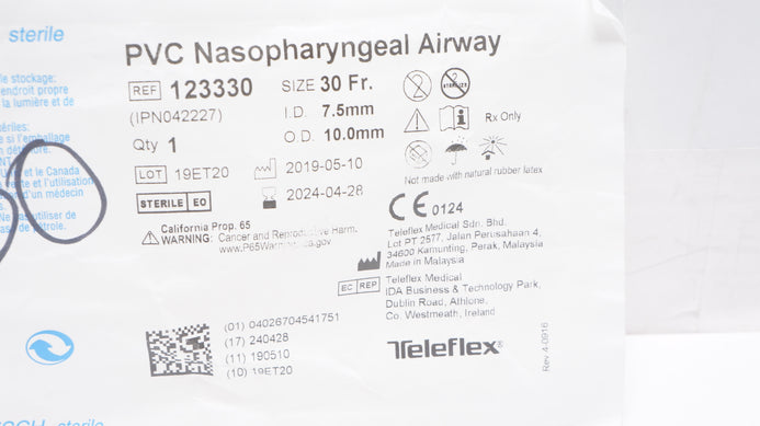 - Teleflex 123330 PVC Nasopharyngeal Airway 30Fr., 7.5mm x 10mm (x)