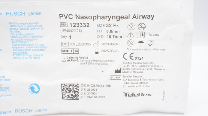 - Teleflex 123332 Rusch PVC Nasopharyngeal Airway 32 Fr. 8.0mm I.D. x 10.7mm O.D.