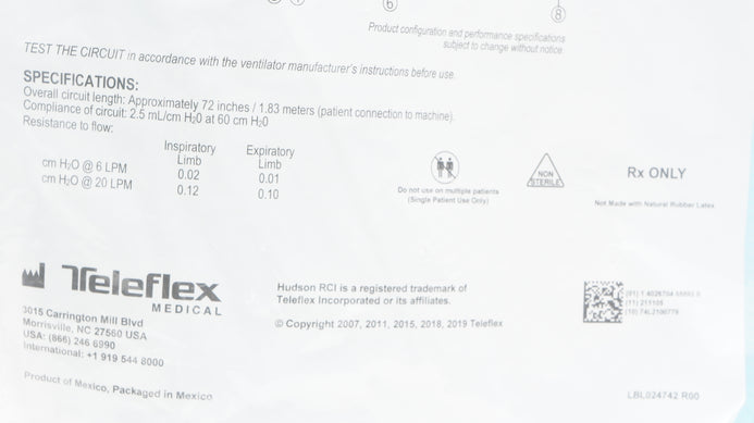 - Teleflex 1613 Hudson RCI Ventilator Tubing Set,Long - Box