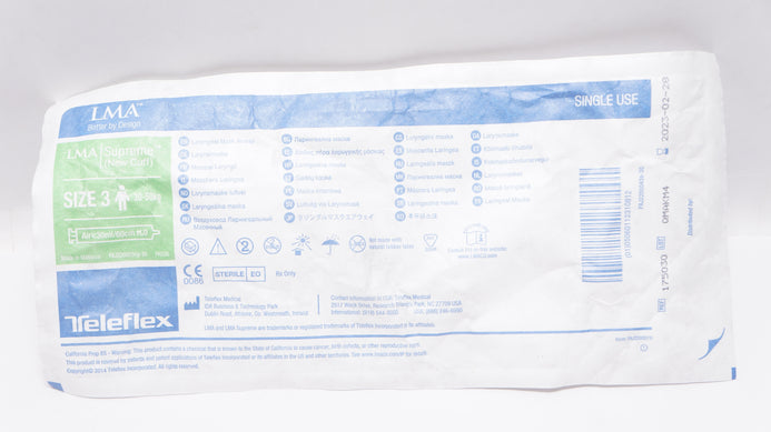 - Teleflex 175030 LMA Supreme Laryngoscopy Mask Airway Size3 30-50kg <30ml/60cm(x)