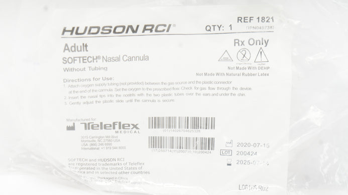- Teleflex 1821 Hudson RCI Adult Softech Nasal Cannula without Tubing