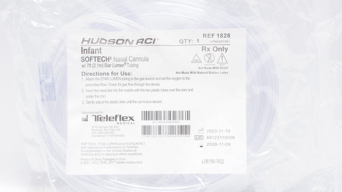 - Teleflex 1828 Hudson RCI Infant Softech Nasal Cannula w/7ft. Star Lumen Tubing