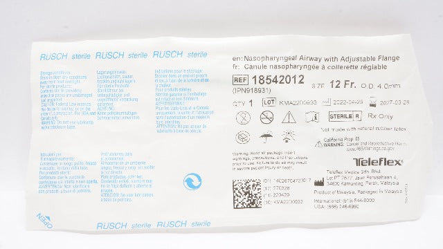 - Teleflex 18542012 Rusch Nasopharyngeal Airway w/Adjustable Flange 12Fr x 4.0mmOD