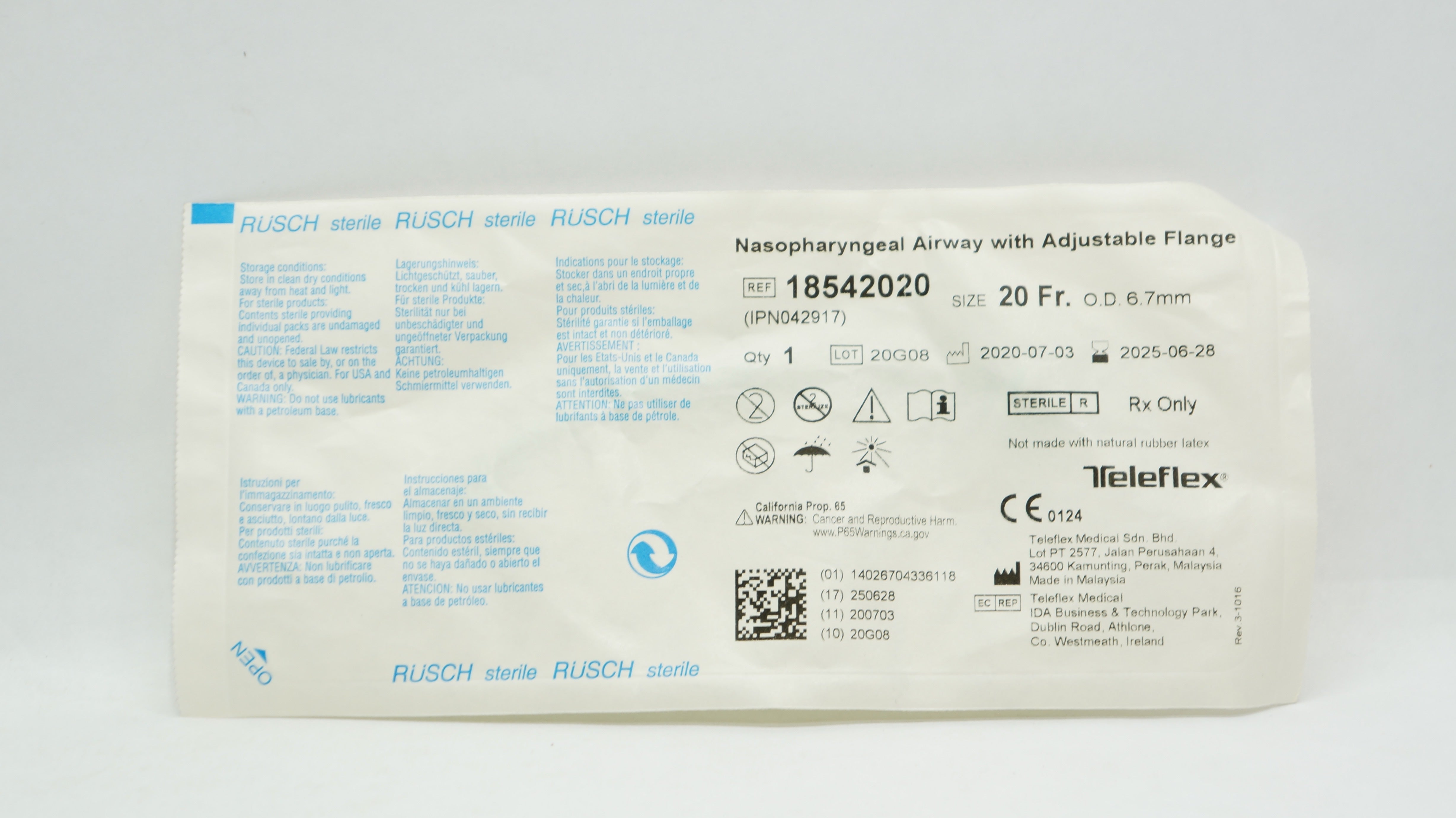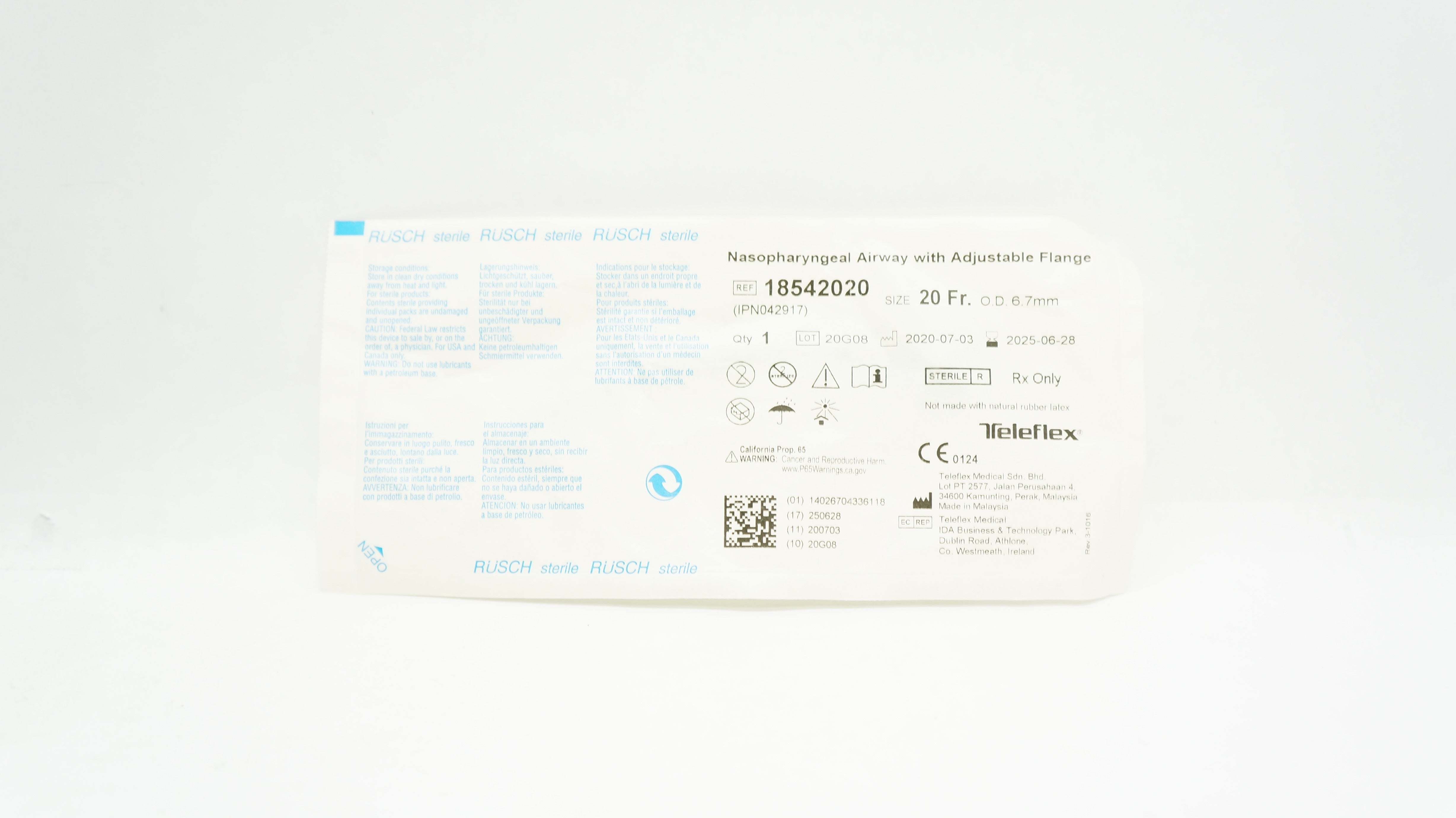 - Teleflex 18542020 Rusch Nasopharyngeal Airway Adjustable Flange 20Fr x 6.7mm OD