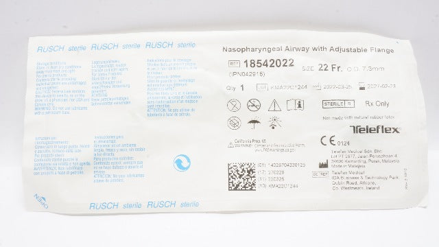 - Teleflex 18542022 Rusch Nasopharyngeal Airway w/Adjustable Flange 22Fr x 7.3mmOD