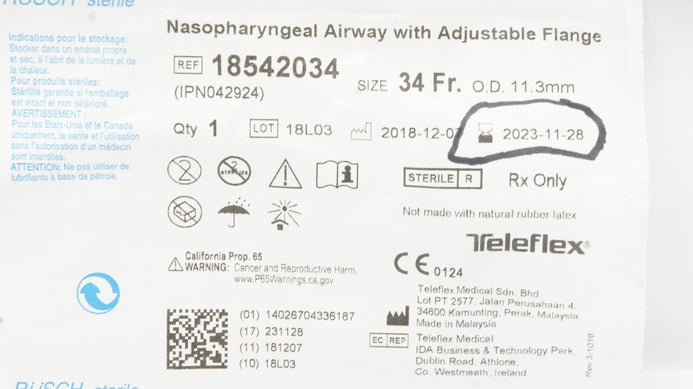 - Teleflex 18542034 Nasopharyngeal Airway W/Adjustable Flange Size 34Fr (x)