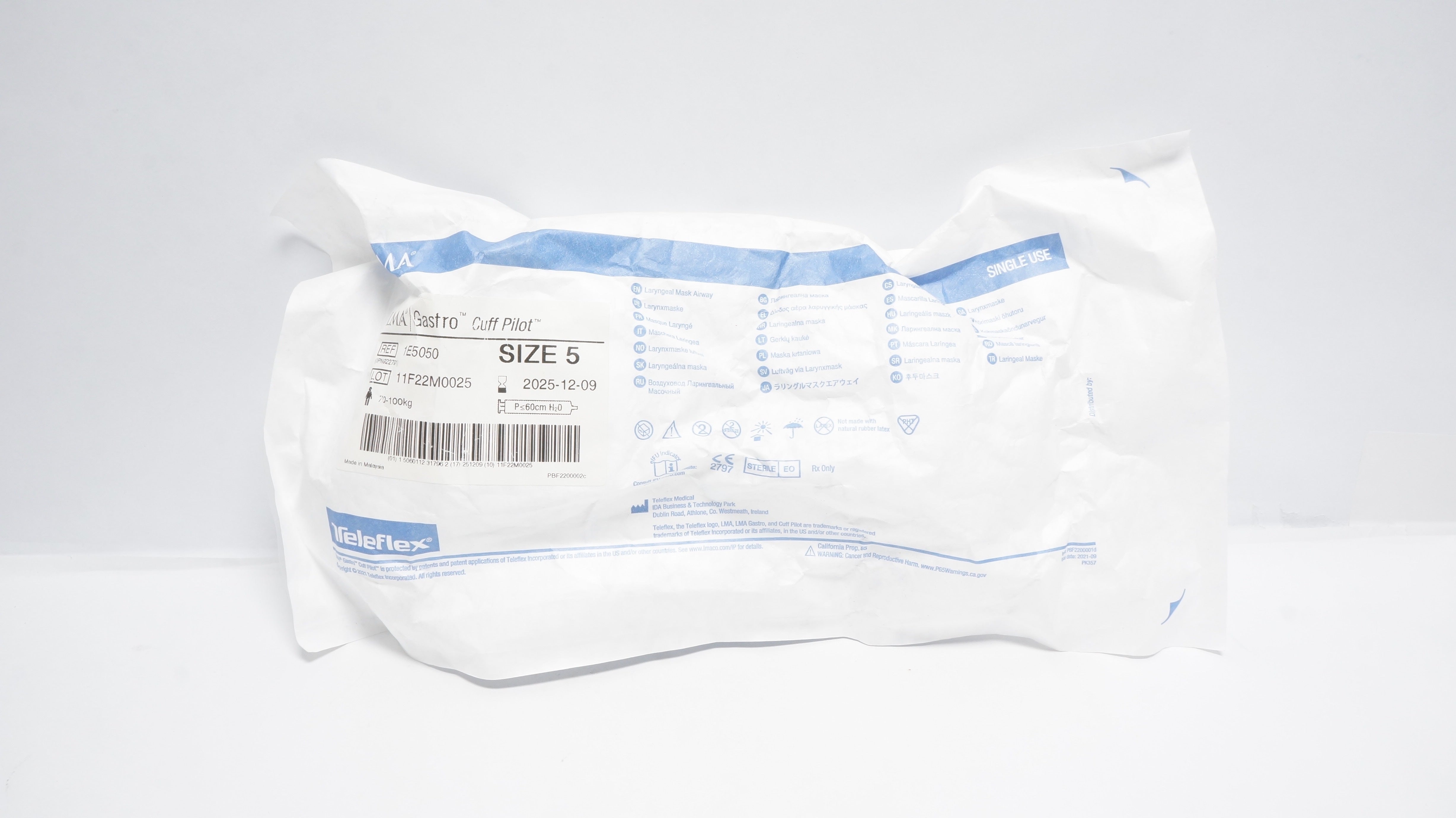 - Teleflex 1E5050 LMA Gastro Cuff Pilot, Laryngeal Mask Airway Size 5, 70-100kg(x)