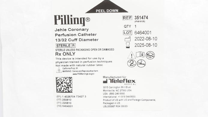 - Teleflex 351474 Pilling Jehle Coronary Perfusion Cath. 13/32 Cuff Diameter (x)