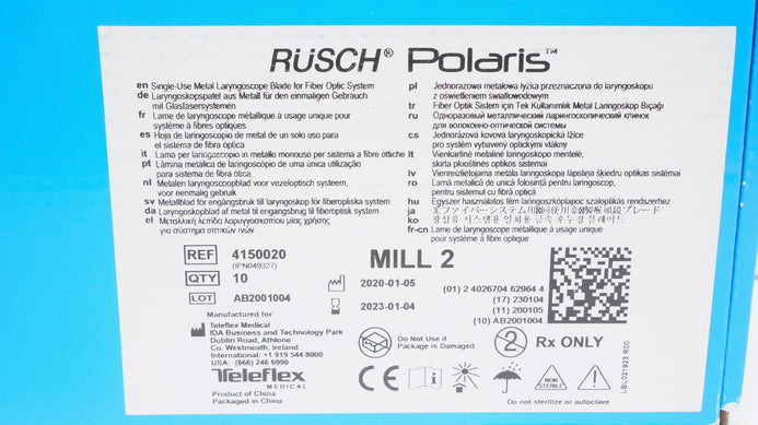 - Teleflex 4150020 Rusch Polaris Fiber Optic Laryngoscope Blade MILL2 (x) Box-10