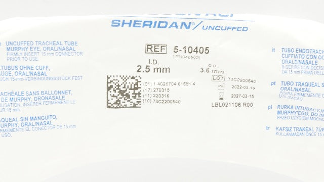 - Teleflex 5-10405 Hudson RCI Sheridan Tracheal Tube Uncuffed 2.5mm ID x 3.6mm OD