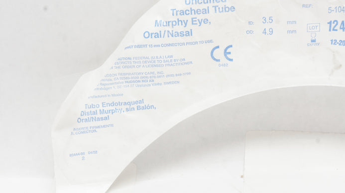 - Teleflex 5-10407 Hudson RCI Sheridan Tracheal Tube Uncuffed 3.5 ID x 4.9mm OD(x)