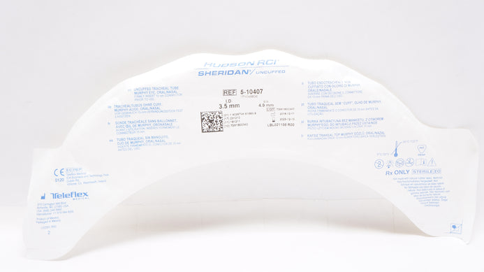 - Teleflex 5-10407 Hudson RCI Sheridan Tracheal Tube Uncuffed 3.5mm ID x 4.9mm OD