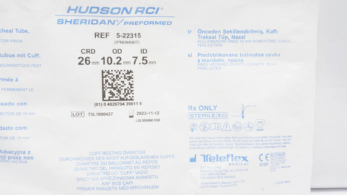 - Teleflex 5-22315 Hudson RCI Cuffed Tracheal Tube 26 x 7.5ID x 10.2mmOD (x)