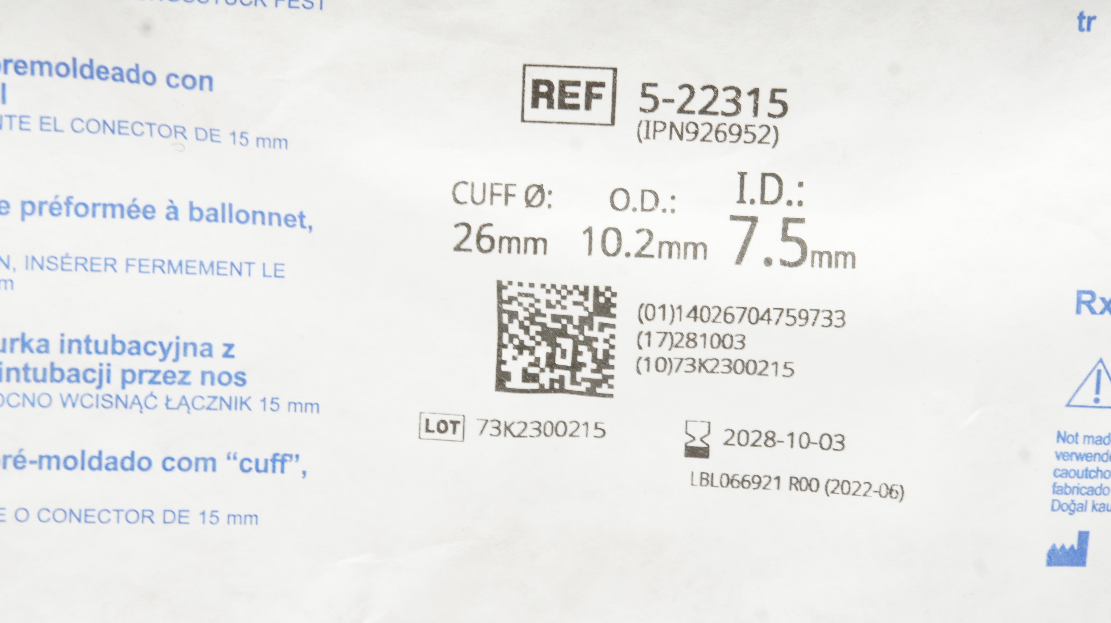 - Teleflex 5-22315 Hudson RCI Preformed Cuffed Tracheal Tube 26 x 7.5ID x 10.2mmOD