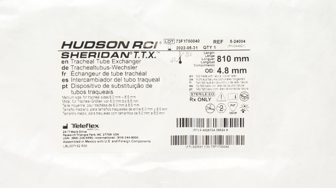 - Teleflex 5-24004 Hudson RCI Tracheal Tube Exchanger 810mm x 4.8mm (x)