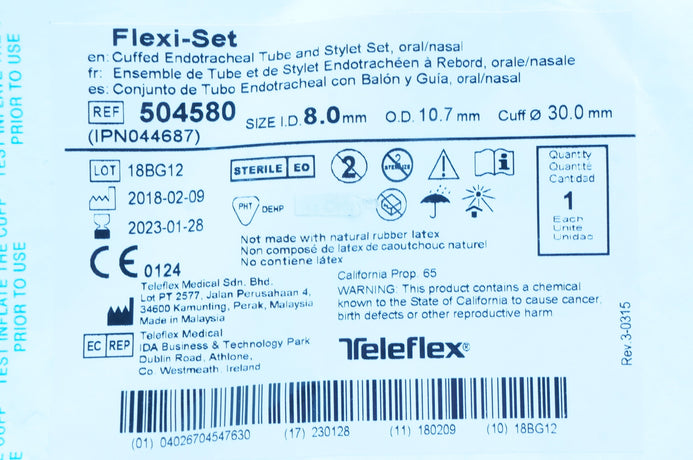 - Teleflex 504580 Flexi-Set Endotracheal Tube & Stylet 8.0 ID x 10.7mm OD x 30.0mm