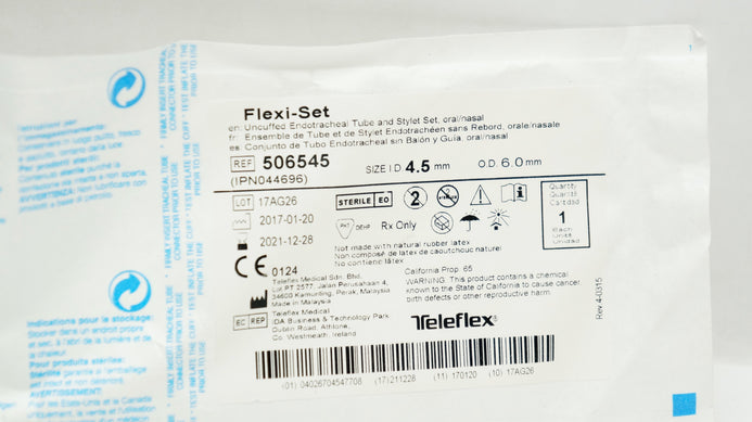- Teleflex 506545 Flexi-Set Uncuffed Endotracheal Tube & Stylet Set 4.5 x 6.0mm(x)