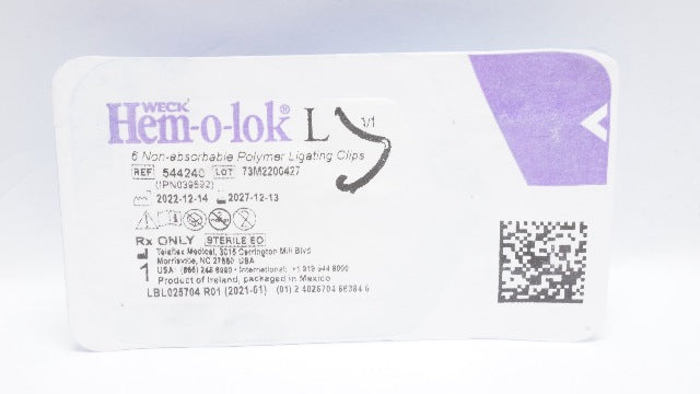 - Teleflex 544240 Weck Hem-o-lok 6 Non-Absorbable Polymer Ligating Clips Large