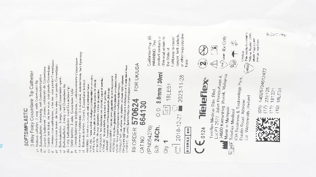- Teleflex 570624 Foley Catheter Soft Simplastic Tip 30 cc Balloon 24 Fr (x)