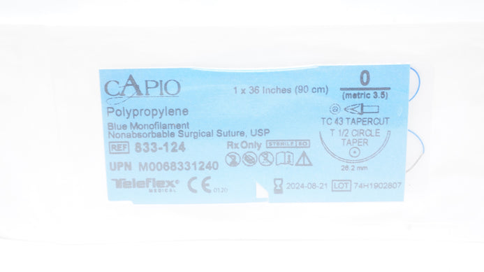 - Teleflex 833-124 0 CAPIO Polypropylene Stre TC43 Tapercut 1/2c 26.2mm, 36inch(x)